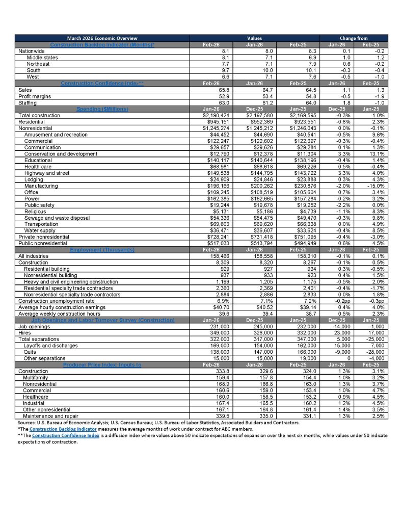 Materials price escalation resurfaced and the industry lost jobs in February, while private nonresidential construction spending continued its slow but steady decline to start the year. The fact that industry momentum was waning before the conflict in Iran sent oil prices and economic uncertainty surging is particularly concerning.